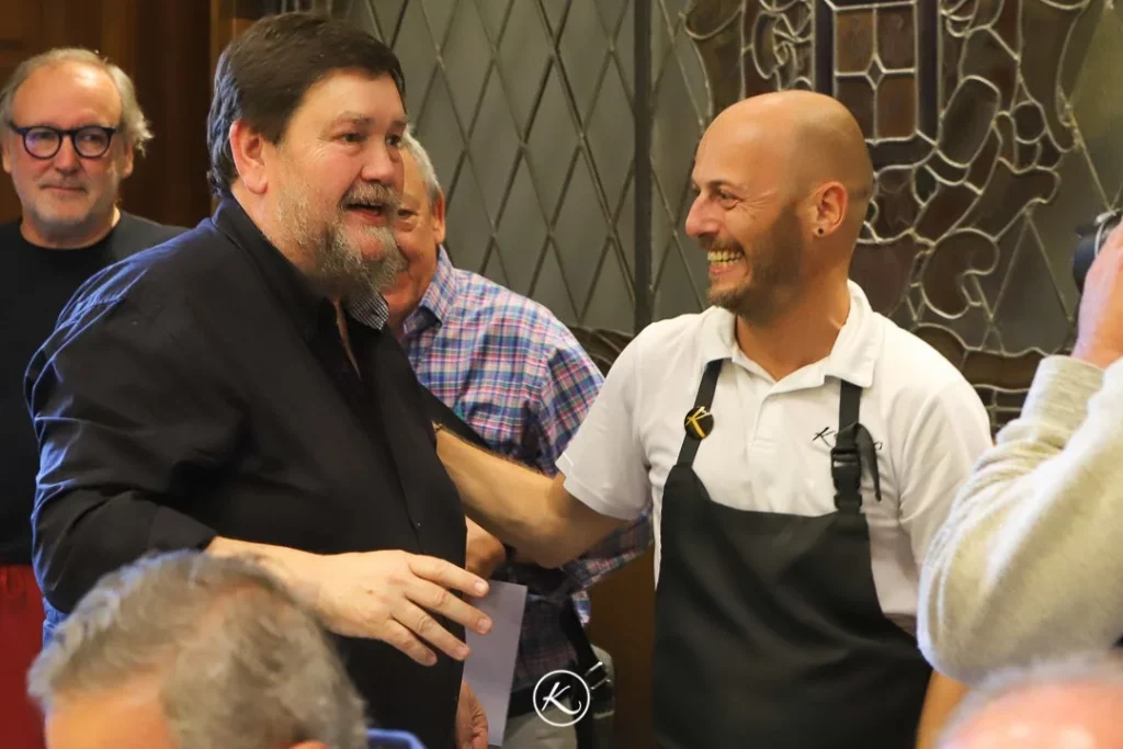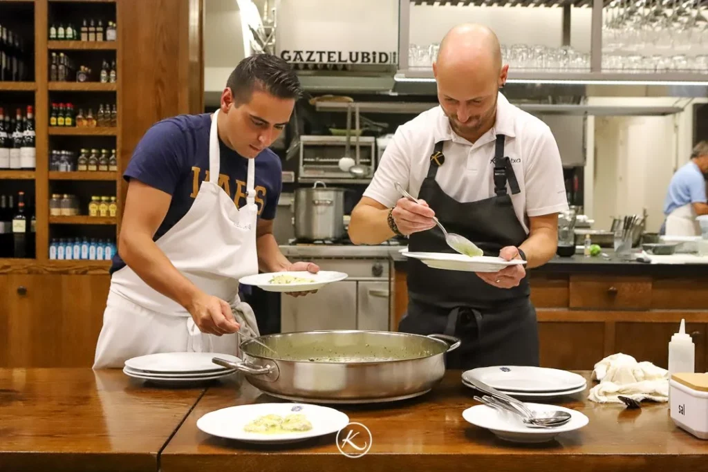 Con motivo de la reciente distinción como Premio Nacional de Gastronomía al gran Mikel Zeberio, Dani salió de su cocina para trasladarse cerquita, a Gaztelubide, y preparar junto con Ramón Roteta el menú para la ocasión. Consistió en delicias de salmón, pochas, kokotxas, cabezada con xixas y helado elaborado por el joven heladero irunés Jon Gallardo. La fiesta fue posible gracias al socio de Gaztelubide Alfredo Madina, que ejerció de anfitrión.